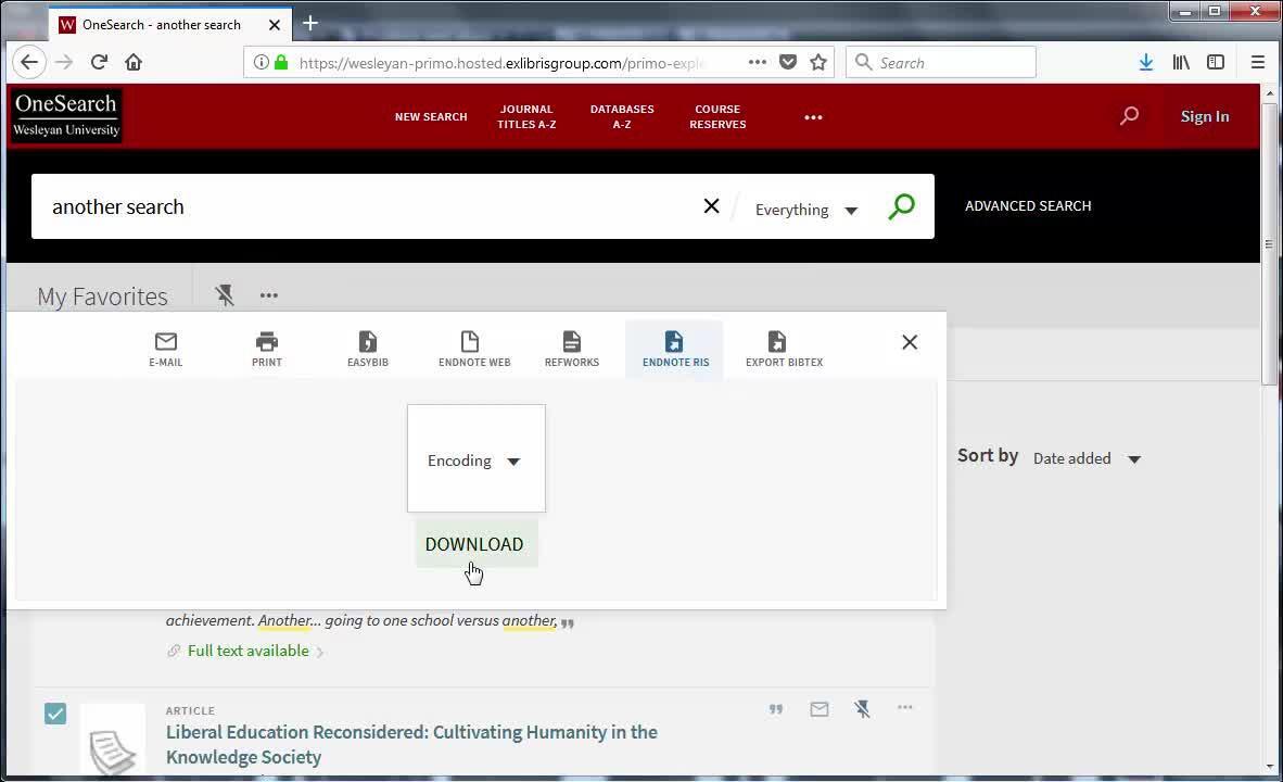 How to take citations you find in databases such as Library OneSearch, JSTOR, WorldCat, and others, and transfer them into EndNote.